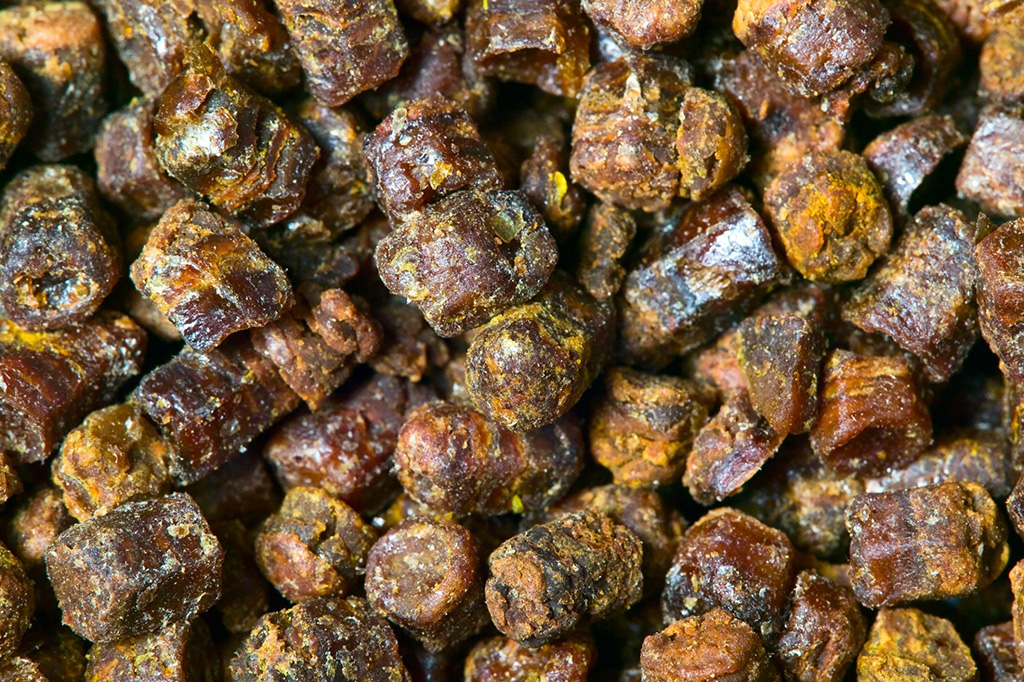 꿀벌이 나무의 수액, 꽃가루, 벌의 분비물을 모아 만든 물질로, 벌집 내부 환경을 보호하고 유지하는 데 사용되는 자연 유래 성분입니다.